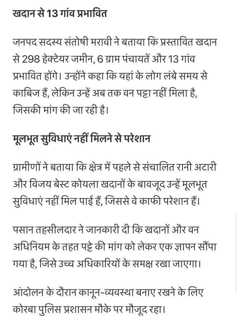 इसमें बड़ी संख्या में ग्रामीण आदिवासी शामिल हुए। आंदोलन का मुख्य उद्देश्य वन अधिकार पट्टे की मांग और रूंगटा कोल माइंस खदान के प्रस्तावित विस्तार का विरोध करना था।